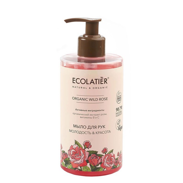 Мыло для рук ECOLATIER® Organic Wild Rose с натуральными экстрактами и маслами в составе нежно очищает, смягчает и питает кожу рук, защищает от сухости.