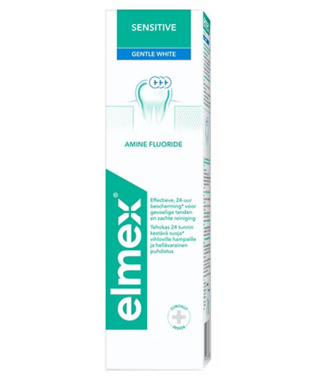 Каждый хочет иметь свободу наслаждаться любимыми напитками и едой, и именно поэтому зубная паста elmex Sensitive Gentle White разработана для обеспечения 24-часовой защиты от пятен*. Аминофторид, содержащийся в зубной пасте, укрепляет зубы и помогает предотвратить кариес, а содержащиеся в ней нежные отбеливающие ингредиенты восстанавливают естественную белизну зубов. С зубной пастой elmex Sensitive Gentle White вы, наконец, сможете улыбаться, не беспокоясь о пятнах. * Используется постоянно и два раза в день. Ингредиенты : Вода, гидратированный диоксид кремния, сорбитол, гидроксиэтилцеллюлоза, олафлур, ароматизатор, кокамидопропилбетаин, сахарин, лимонен, CI 77891. Ф'