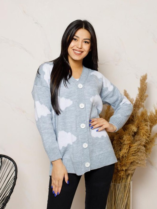 Совместные покупки Нижний Тагил Женская одежда Кофты, кардиганы — ESENIA Кардиган женский удлиненная модель оверсайз Облака - Светло-серый