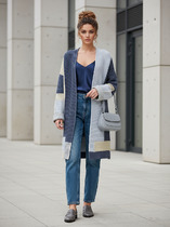 ESENIA Кардиган женский полушерстяной удлиненный с косами - Чёрный, Серый