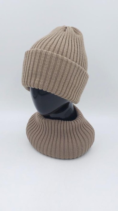 Совместные покупки Нижний Тагил Женские аксессуары Шапки — ESENIA Комплект женский (шапка+снуд) двойной вязки - Кофе с молоком