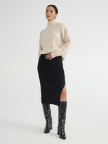 Модель прямая, длинная, внизу сзади небольшой разрез (картинку можно посмотреть на сайте производителя)