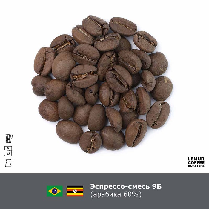 Эспрессо-смесь №9б (40% робусты) - Хит!Состав: Бразилия Mogiana, Sul de Minas и