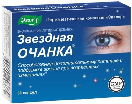 Чтобы не допустить возрастных изменений зрения, необходимо обеспечить глазам дополнительную защиту. Поможет в этом натуральная биологически активная добавка к пище Звездная очанка. В основе Звездной очанки - экстракт травы очанки. В народе очанку так и называют - -глазная трава-. Капсулы Звездная очанка содержат экстракт очанки, который в десятки раз превышает силу самой травы! Растительный комплекс дополнен витаминами (А, В2, С), рутином и цинком для витаминно-минеральной поддержки и питания тканей глаза. Звездная очанка способствует поддержанию функционального состояния зрительного аппарата, предупреждая возрастные изменения зрения. Народная мудрость не гонится за быстрым результатом. Эффект от применения трав наступает не сразу, но зато он надежен и не исчезает как только вы прекращаете прием. Если вам за 40, позаботьтесь о своем зрении, регулярно принимайте Звездную очанку. Звездная очанка - это суперзвезда вашего зрения!