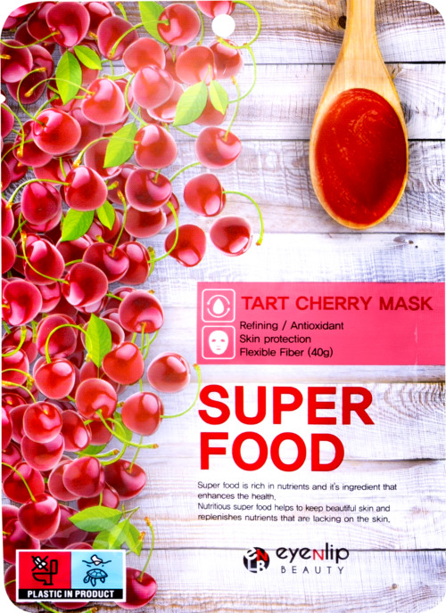Eyenlip Маска-салфетка с экстрактом терпкой вишни Super Food Tart Cherry Berry Mask cодержит увлажняющие и омолаживающие компоненты экстракта вишни, мягкая и нежная по структуре, дарит обезвоженной коже увлажняющий уход и восстанавливает ее. Ощутите чистоту и красоту увлажненной кожи.