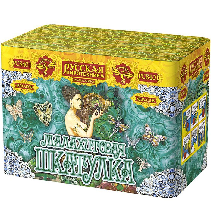 Чем так привлекают людей уральские сказы Бажова? Нас завораживает этот сказочный мир, атмосфера русского Севера, описания умопомрачительных богатств, таящихся в глубине высоких гор... Запустите салют "Малахитовая шкатулка" - и вам покажется, будто вы попали в святая святых подгорного царства Хозяйки Медной Горы! Темное небо - как таинственные своды глубокой пещеры