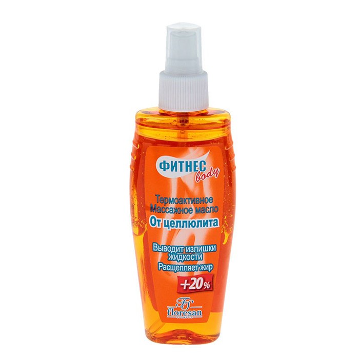 Floresan Фитнес body Термоактивное массажное масло "От целлюлита" на 80% состоит из натуральных компонентов.