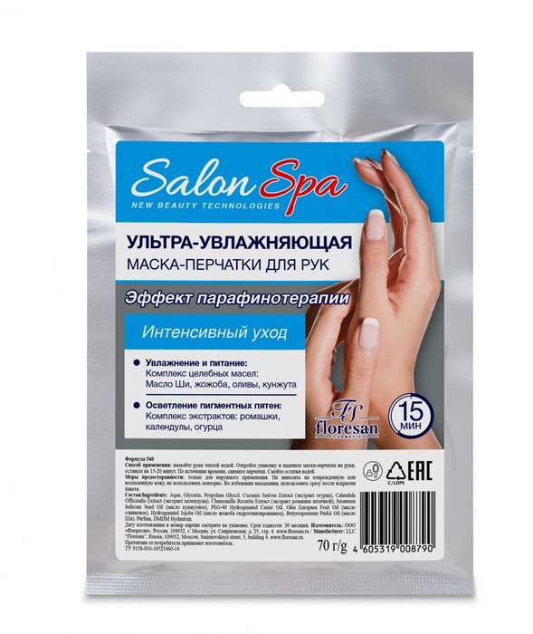 Совместные покупки Нижний Тагил Косметика и парфюмерия Уход за руками и ногтями — FLORESAN Spa-salon Маска-Перчатки д/рук Ультра-Увлажняющая Интесивный уход