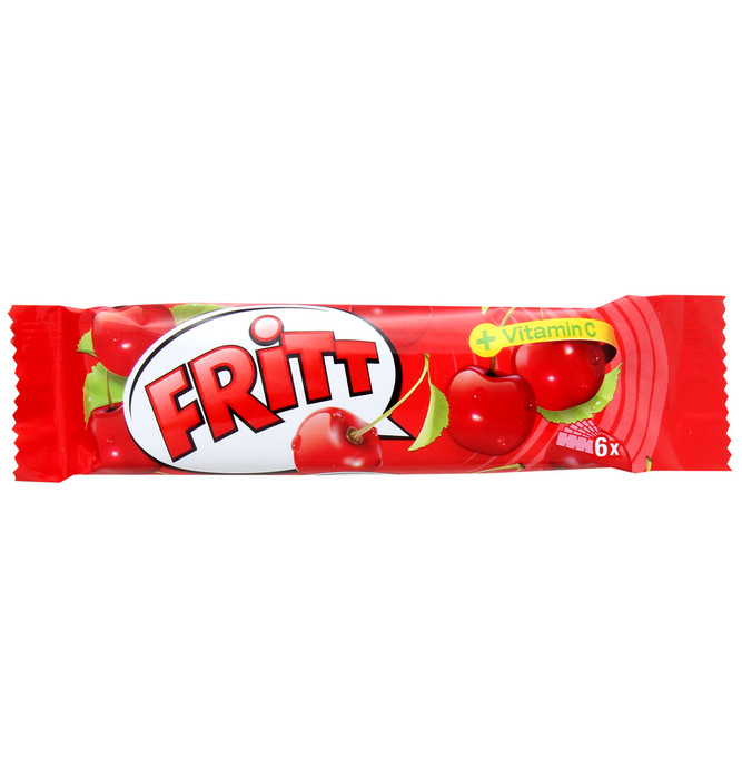 Жевательные конфеты с витамином С, со вкусом вишни. Состав сироп глюкозы, сахар, растительные жиры (пальма, кокос, пальмовое ядро), желатин, подкислитель (лимонная кислота), порошок плодов вишни (0,5%), витамин С, натуральный ароматизатор, краситель [бетанин (свекла)]. Пищевая ценность 100 г Энергетическая ценность 1692 кДж/401 ккал Жиры 8,50 г из них насыщенные жирные кислоты 5,70 г Углеводы 79 г из них сахар 50 г Белок 2 г Соль (=натрий х 2,5) 0,01 г