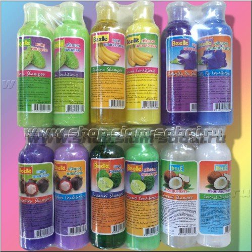 Фруктовый набор для ухода за волосами Фруктовый тайский шампунь + фруктовый кондиционер для волос Фруктовый уход за волосами – это шампунь 400 мл + кондиционер для волос 400 мл с очень аппетитными тропическими ароматами Фруктовая серия по уходу за волосами имеет разнообразные приятные фруктовые и цветочные ароматы, и можно выбрать уход за волосами на свой вкус и настроение :) Итак, «вкусный уход за волосами» – на Ваш выбор: Шампунь и кондиционер для волос с Франжипани: чувственный горьковато-цветочный аромат, восстановление блеска и силы волос Ананасовый уход: шампунь плюс бальзам с потрясающим ароматом Набор с экстрактом Нони: шампунь плюс бальзам-кондиционер для волос с экстрактом тропического фрукта Нони , против выпадения волос Кокос шампунь плюс кокосовый кондиционер Banna для любителей нежного аромата кокоса Алое Вера: шампунь плюс бальзам-кондиционер для волос с экстрактом Алое , для блеска и силы волос Мангостиновый уход - идеальный уход для жирных волос Банан - уход: банановый ароматный шампунь плюс бальзам для волос с экстрактом банана Цитрусовый шампунь на основе бергамота плюс кондиционер Шампунь с экстрактом синего чая и кондиционер с клиторией - против выпадения волос и против ранней седины Шампунь + кондиционер Манго с аппетитным тропическим ароматом