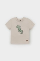 Футболка для мальчика из трикотажного полотна "кулирка" с приспущенным плечом, втачными короткими рукавами, горловиной овальной формы, обработанной втачной планкой и принтом на полочке, выполненным в технике шелкографии. По шву втачивания планки в горловину настрочена отделочная строчка.