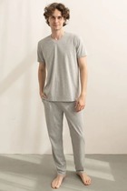 Футболка мужская из гладкокрашеного трикотажного полотна "кулирка" классического покроя со слегка удлиненными плечевыми швами, короткими втачными рукавами и горлорвиной овальной формы, обработанной втачной планкой. В центре верхней части спинки настрочен декоративный элемент прямоугольной формы. По горловине настрочена двойная отделочная строчка. Низ рукавов и изделия обработаны подгибкой.