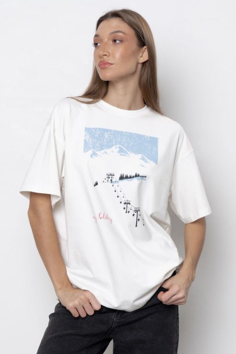 Vilatte Свободная футболка с принтом из премиального хлопка с эластаном D49.146