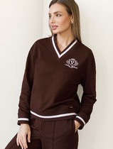 Свитшот среднего объема с V вырезом и принтом из футера двухнитки с эластаном