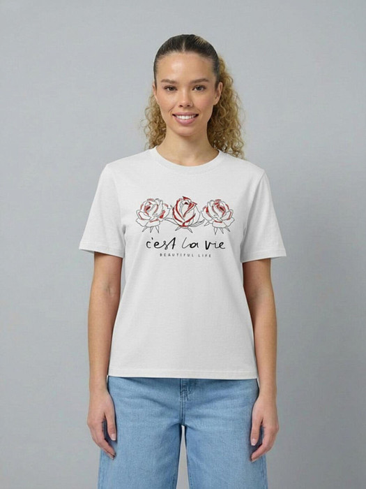 Женская футболка F5, Comfort fit (свободный силуэт), круглый вырез горловины, короткий рукав. Выполнена из классического трикотажного полотна.
