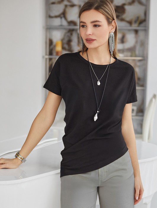 — Футболка из премиального хлопка с ассемитричным низом