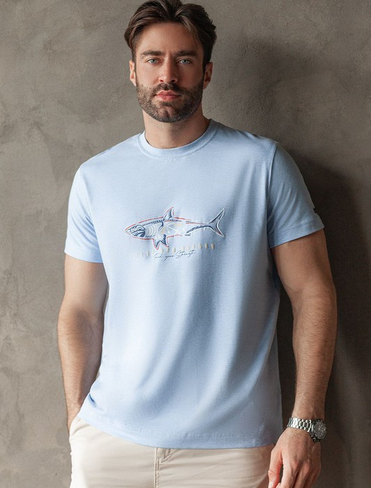 Состав: 92%Хлопок 8%ПУ Плотность: 170 Г/м2 Параметры модели на первом фото: Рост 190, бюст 108, талия 87, бедра 104Перевод принта: deep and hungry, feed your strength - голодный обитатель глубин, укрепляй свою силу. Футболка выполнена из премиального хлопка с эластаном. Авторский принт нанесен фактурными красками с устойчивым покрытием. Изделие комфортно сидит по фигуре, не сковывая движений. За счет среднего объема, хорошо подойдет как первый слой под пиджак, кардиган или бомбер. На рукаве нашивка из эко-кожи с логотипом бренда.