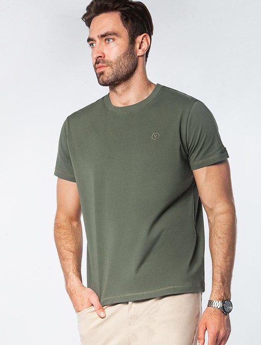 Однотонная футболка выполнена в минималистичном стиле, дополнена аккуратной вышивкой на груди в виде буквы V в тон изделия, а так нашивкой на рукаве из эко-кожи с логотипом VILATTE. Подходит как классический вариант для работы в офисе под пиджак, так и для повседневной носки или занятий спортом. Мягкая ткань приятна к телу, не вызывает дискомфорта и идеально подходит для дома или летних прогулок благодаря короткому рукаву.