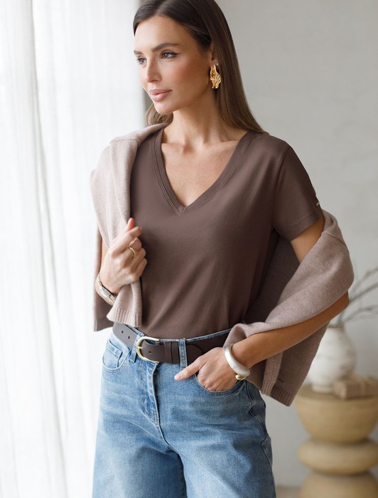 Совместные покупки Нижний Тагил Женская одежда Костюмы, комплекты — Футболка из премиального хлопка с V-образным вырезом