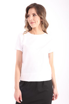 Футболка женская прямого силуэта из хлопка с эластаном. Горловина округлой формы. Рукава втачные с отложными манжетами.