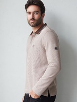 Лонгслив из фактурного трикотажа с плетеным воротником поло с застежкой на пугов