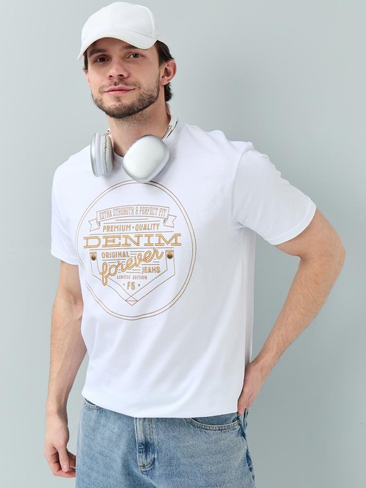 Мужская футболка F5, Regular fit (полуприлегающий силуэт), круглый вырез горловины, короткий рукав. Выполнена из классического трикотажного полотна.