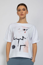 Футболка свободного кроя из вискозного полотна. Рукав втачной, планка по горловине. Вырез круглый. Низ изделия и рукавов имеют плоский шов.