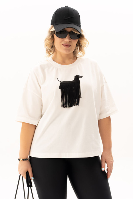 Женская блузка - универсальный предмет гардероба, который подойдет для любого случая. Тонкая и легкая основная ткань хлопок с добавлением эластана  идеально подойдет для жаркого летнего дня, так как отлично пропускает воздух Эта блузка с печатью в виде собаки  станет отличным дополнением к вашему гардеробу, подчеркнет ваш индивидуальный стиль и добавит нотку стильной элегантности. Носите ее с джинсами для легкости и свободы, с юбкой для женственности или с брюками для делового образа. Благодаря разнообразию вариантов комбинирования, вы будете выглядеть модно и стильно в любой ситуации. Идеально для тех, кто ценит комфорт без потери стиля - выглядеть модно, но при этом быть свободными в движениях.