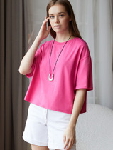 Vilatte Укороченная футболка силуэта овер-сайз D49.090 розовая фуксия