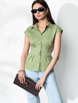 Блузка приталенного кроя с коротким рукавом из легкого хлопкового поплина