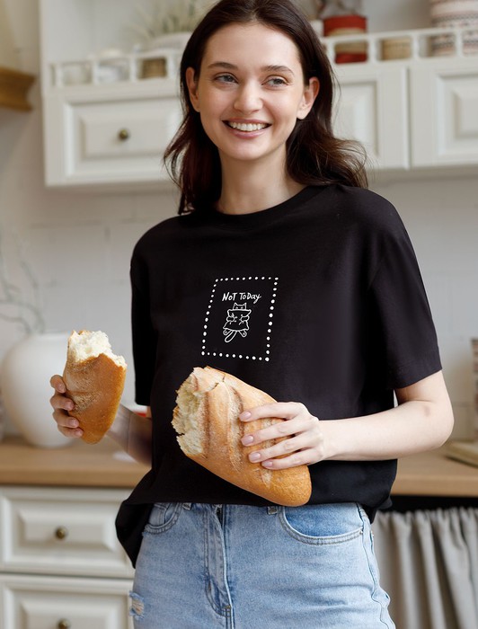 Особое внимание привлекает стильный принт в виде милого котика с минималистичной надписью. Перевод надписи: Not today - Не сегодня. Принт выполнен красками с устойчивым покрытием, который добавляет изделию оригинальности и позволяет выразить индивидуальность.