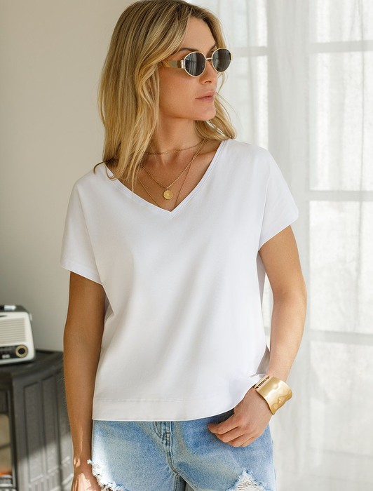 Состав: 92%Хлопок 8%ПУ Плотность: 170 Г/м2 Параметры модели на первом фото: Рост 172, бюст 88, талия 64, бедра 88 Размер товара на первом фото: 42Стильная свободная футболка белого цвета с выразительным V-вырезом создана для девушек и женщин, которые ценят комфорт и натуральность. Прямой крой обеспечивают непревзойденную легкость в теплую и жаркую погоду, позволяя телу дышать. Натуральный хлопок премиального качества — отличается дышащими свойствами и высокой износостойкостью, подходит для самой чувствительной кожи. V вырез гармонично подчеркивает линию шеи, такой вырез визуально удлиняет силуэт, подчеркивая достоинства фигуры. Цельнокроеный рукав гарантирует свободу движений и аккуратную посадку, что особенно актуально для активного образа жизни. Подойдет на большие размеры, комфортно сидит любой фигуре. Повседневная футболка сочетается с базовыми и акцентными элементами одежды, позволяет создавать различные повседневные или яркие образы.