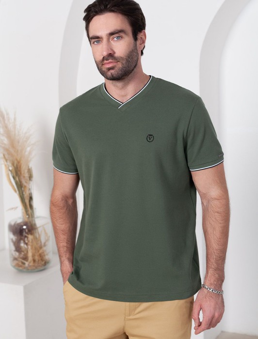 Футболка с V-вырезом из премиального хлопка с эластаном