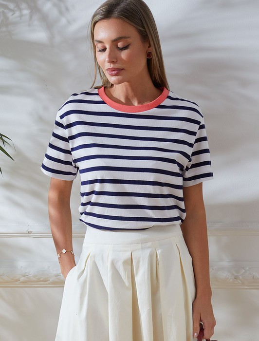 Совместные покупки Нижний Тагил Женская одежда Футболки — Футболка в горизонтальную полоску из премиального хлопка с эластаном