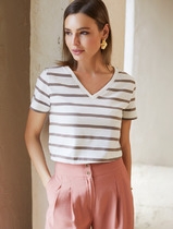 Vilatte Футболка из премиального хлопка с эластаном D49.982 белый-кофе полоса