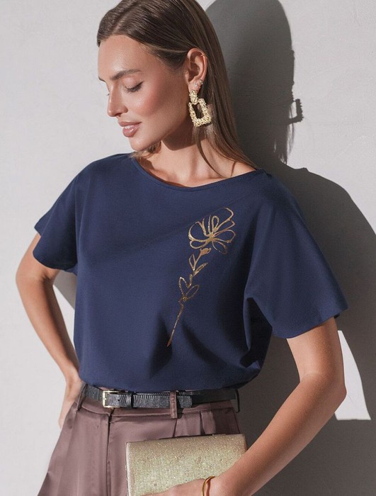 Футболка Vilatte D49.133 т.синий_цветок