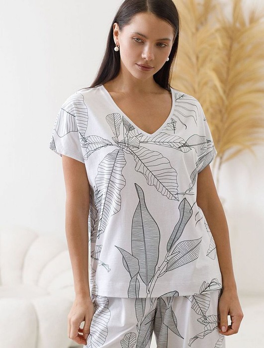 Свободная футболка кофейного цвета с V-вырезом и цельнокроеным рукавом из натурального 100% хлопка создает красивый и легкий образ для дома и отдыха. Дышащая ткань бережно заботится о коже, в то время как декольте с V-вырезом утонченно подчеркивает линию шеи, а свободный крой скрывает возможные недостатки фигуры. Трендовый принт в виде лапок добавляет повседневной футболке оригинальности и актуальности для любой домашней обстановки. Такая футболка отлично подойдет для тех, кто ценит комфорт и стиль одновременно. Благодаря натуральной хлопковой ткани, она идеально подходит для ежедневного использования, обеспечивая чувство легкости и свободы движений. Легкая структура материала поддерживает оптимальный микроклимат, что важно при длительном использовании. Эта футболка женственно смотрится и дарит ощущение уюта, делая ее необходимым элементом домашнего гардероба.