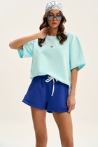 Футболка выполнена из премиального хлопка с эластаном. Авторский принт нанесен фактурными красками с устойчивым покрытием. Изделие комфортно сидит по фигуре, не сковывая движений. За счет среднего объема, хорошо подойдет как первый слой под пиджак, кардиган или бомбер. На рукаве нашивка из эко-кожи с логотипом бренда.