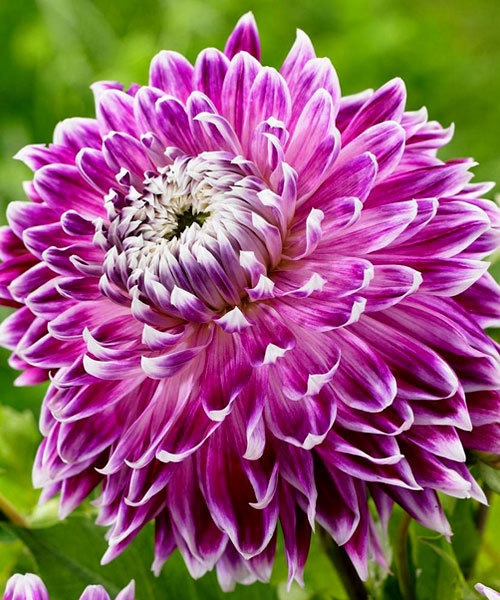 Георгина Ванкувер - украшение любого сада и клумбы. Период цветения георгинов Ванкувер начинается в июле, а заканчивается в начале или середине сентября. Все это время на георгинах Ванкувер формируются красивые и пышные цветки сиреневого цвета, который плавно перетекает в молочно-белый оттенок на кончиках лепестков. Во время полного роспуска соцветие Ванкувера может достигать диаметра в 20–25 см. Кроме необычайной красоты, цветок источает легкий приятный запах. Каждое соцветие сохраняет свою красоту в течение 2–3 недель. У этого цветка довольно внушительная высота – от 100 до 120 см. При этом, невзирая на такую высоту, у Ванкувера крепкие и прочные стебли с темно-зелеными густыми листьями.