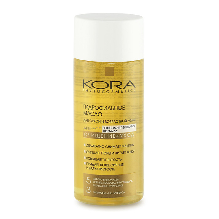 Невесомая формула масла создана для бережного очищения сухой и возрастной кожи лица, век и губ. Легкая масляная формула под влиянием воды создает деликатную пену.Эффективно растворяет загрязнения, питает, увлажняет, возвращая коже комфорт, сияние и бархатистость.В состав гидрофильного масла входит комплекс из 5 масел (виноградное, крамбе, авокадо, кукурузы и оливы).Натуральное масло авокадо производят методом холодного отжима. Эта технология позволяет сохранить полезные свойства тропического плода. Масло авокадо в косметологии считается базовым. Оно используется благодаря способности замедлять процессы старения. Обладает антибактериальными, питательными, увлажняющими и восстанавливающими свойствами.Крамбе известно еще и как абиссинская горчица, катран, абиссинская капуста. Масло крамбе получают путем холодного отжима из семян растения. Ненасыщенные жирные кислоты в составе масла крамбе ценятся за свои увлажняющие и восстанавливающие свойства.Кукурузное масло широко используетсяв косметологии. Оно имеет богатый, прекрасно подходит для любого типа кожи и является многофункциональным. Кукурузное масло гипоаллергенно.Виноградное масло добывается путем прессования косточек винограда, при котором сохраняются все полезные свойства продукта. Виноградное масло богато биофлавоноидами, которые стимулируют выработку коллагена, благодаря чему кожа остается упругой и эластичной.В комплексе эти пять растительных масел активно восстанавливают липидный барьер, защищают от агрессивного воздействия внешней среды, препятствуют процессам старения.Витаминный комплекс сочетает в себе витамины А, Е, В5. Е (токоферол) – витамин молодости стимулирует восстановление коллагена и эластина, повышает упругость, улучшает цвет лица, оказывает выраженный anti-age эффект.Основное действие витамина А антиоксидантное. Он, в прямом смысле, омолаживает кожу, улучшает ее кровоснабжение, укрепляет капилляры. Пантенол оказывает мощное увлажняющее действие.Активные ингредиенты: Масла виноградное, авокадо, кукурузное, оливковое, крамбэ, витамины А, Е, пантенол.Применение: Нанесите небольшое количество средства на влажную кожу лица. Деликатно массируйте кожу круговыми движениями для удаления макияжа и загрязнений, постепенно преобразовывая масло в лёгкую пену. Для снятия макияжа с глаз используйте влажный ватный диск. Смойте теплой водой. Избегайте попадания масла на слизистую оболочку глаз. Используйте ежедневно утром и/или вечером.