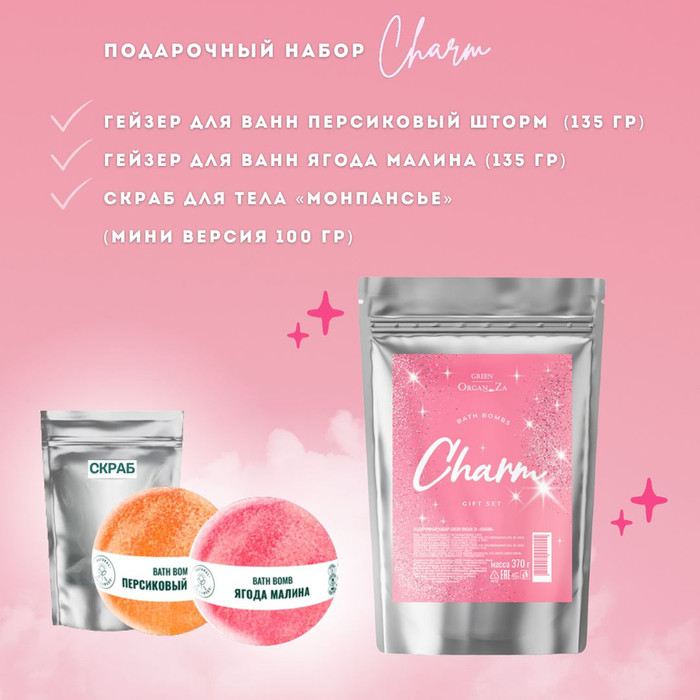Совместные покупки Нижний Тагил Косметика и парфюмерия Уход за телом — GO Подарочный набор "Charm" (Скраб для тела Монпансье + гейзеры Ягода малина,Пер