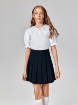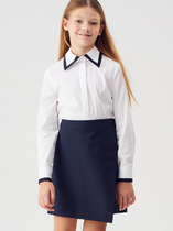 Трикотажная школьная блузка для девочки приталенного силуэта,