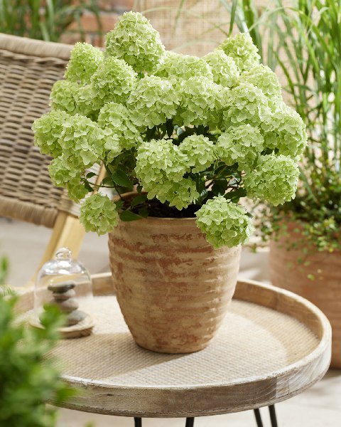 Petite® Cherry - это компактная растущая гортензия с плотными и многочисленными цветами. Цветение начинается с июня, что очень рано. Цвет меняется с лаймово-зеленого на темно-красный в сентябре. Растение будет полностью покрыто отличными цветами! Высота до 50 см и ширины около 40 см.
