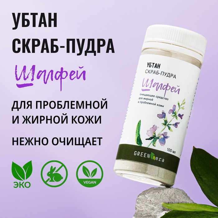 Убтан натуральный Шалфей для жирной и проблемной кожи, содержит рисовую муку и цинк, которые оказывают матирующее действие. Отлично сужает поры, нормализует выработку кожного сала, уменьшает жирный блеск.