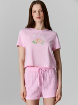 Халат женский из трикотажного полотна «кулирка» с набивным рисунком, на запахе, с втачными длинными рукавами, съемным поясам, продетым в две шлевки, вставленные в боковые швы на уровне линии талии. На правой полочке на уровне бедер – накладной карман прямоугольной формы. Борта и горловина обработаны притачной планкой. Верхний срез кармана и нижние срезы рукавов отделаны кружевом.