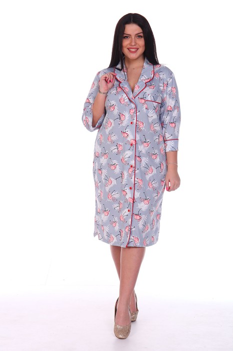 Женский трикотажный халат в классическом стиле, прямого силуэта с