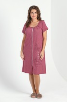 Халат молодежный из гладкокрашенного трикотажного полотна «махра», прямого силуэта, горловиной овальной формы, втачными рукавами длиной до локтя, карманами в боковых швах и центральной бортовой застежкой на тесьму «молния». На левой кокетке полочки вышивка. Комплект укомплектован съемным поясом, завязывающимся на талии и продетым в две шлевки, вставленные в боковые швы.