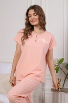 Халат женский полуприлегающего силуэта. Рукав-реглан. На полочке расположены прорезные карманы с печатью. В боковых швах разрезы. Срез борта и горловины окантован. По нижнему срезу рукавов расположена отделочная строчка.