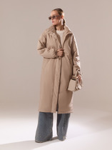 Утепленный плащ на молнии с планкой на кнопках. Капюшон отстежной с утяжкой. В изделии два функциональных кармана.