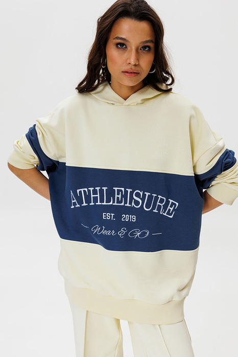 Стильное оверсайз худи с контрастной вставкой и вышивкой Athleisure станет любимым в гардеробе и составит идеальный образ с джинсами, леггинсами, шортами, юбкой и даже платьем. Athleisure - расслабленный и непринужденный стиль, основанный по большей части на спортивных базовых вещах. По сути, это даже не стиль, а способ носить базовые спортивные вещи.